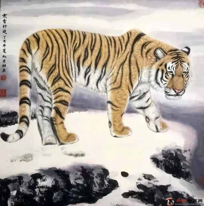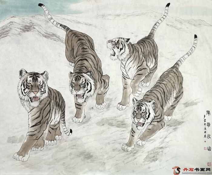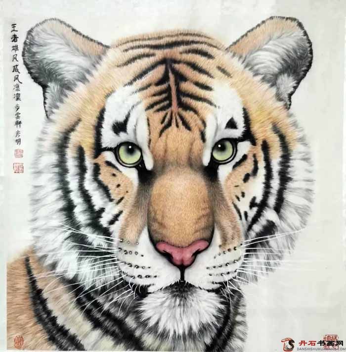 秘彥明喜愛畫虎,不僅自己專研還尋師訪友,曾經(jīng)在我國的畫虎名家孟祥順家中潛心學(xué)習(xí)五年之久。與孟祥順亦師亦友,形影相隨,畫虎風(fēng)格深受其影響。他筆下的中國畫老虎形聲兼?zhèn)洌墒怯址亲匀恢?,而是他托物言志,?nèi)心情感意志的藝術(shù)表現(xiàn)。無論是大畫還是小畫,纖毫畢顯,顯示了畫家深厚的寫實(shí)功底,用傳統(tǒng)表現(xiàn)技法結(jié)合現(xiàn)代構(gòu)圖形式,為中國畫領(lǐng)域開辟了現(xiàn)代繪畫形式的空間。