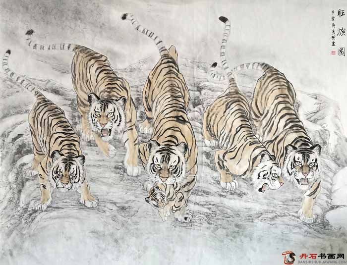 秘彥明喜愛畫虎,不僅自己專研還尋師訪友,曾經(jīng)在我國(guó)的畫虎名家孟祥順家中潛心學(xué)習(xí)五年之久。與孟祥順亦師亦友,形影相隨,畫虎風(fēng)格深受其影響。他筆下的中國(guó)畫老虎形聲兼?zhèn)?,可是又非自然之虎,而是他托物言志,?nèi)心情感意志的藝術(shù)表現(xiàn)。無論是大畫還是小畫,纖毫畢顯,顯示了畫家深厚的寫實(shí)功底,用傳統(tǒng)表現(xiàn)技法結(jié)合現(xiàn)代構(gòu)圖形式,為中國(guó)畫領(lǐng)域開辟了現(xiàn)代繪畫形式的空間。